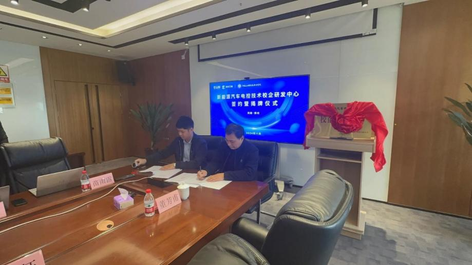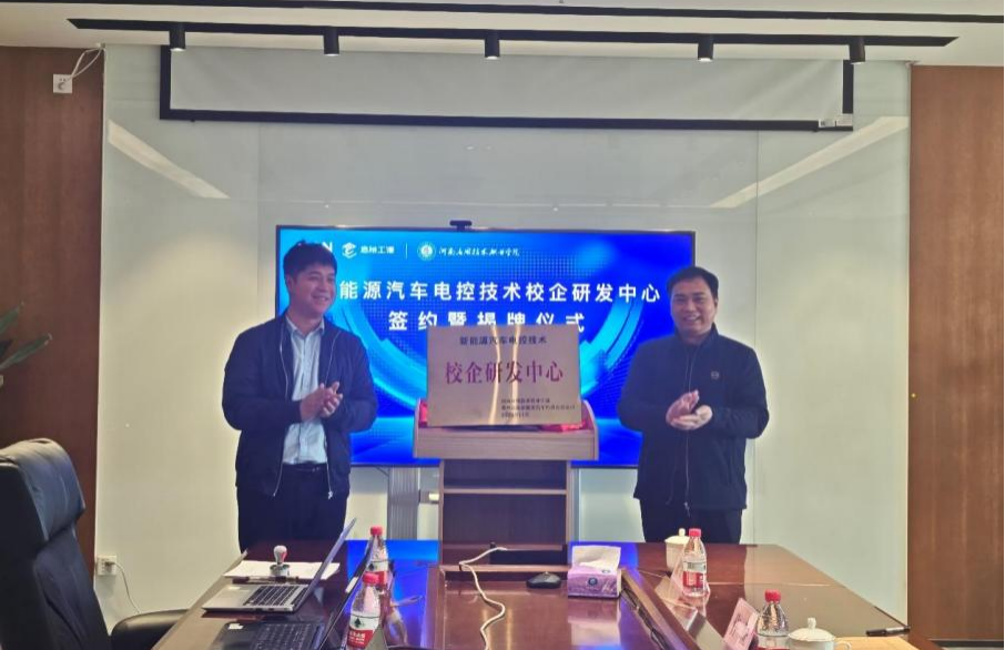 在热烈而融洽的氛围中,仵征副经理与史龙飞经理郑重举行了校企合作签约仪式,双方在协议书上落笔签字,随后共同为“新能源汽车电控技术校企研发中心”揭牌。这一签约与揭牌,标志着双方合作正式落地生根,将在人才联合培养、实习实训基地共建、技术协同创新、课程体系开发等多层面展开深度、长效合作,公司与企业共同定制培养专业人才,企业为员工提供一线实践场景与就业岗位,实现教育链、人才链与产业链的有机衔接。