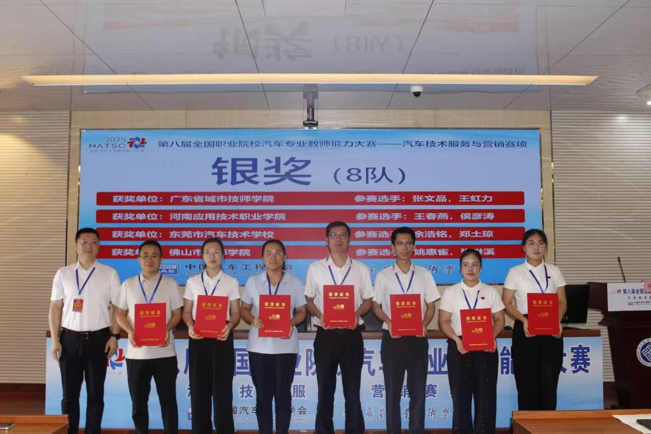 6月21日,第八届全国职业院校汽车专业教师能力大赛汽车技术服务与营销赛项在广东职业技术学院圆满落幕。本次大赛汇聚了全国16个省份的40支精英参赛队同台竞技,在激烈角逐中,由公司副经理仵征亲自带队,王春燕、侯彦涛两位教师组成的参赛团队,凭借扎实的专业功底与出色的临场发挥,最终勇夺高职组银奖,为学院赢得了荣誉。