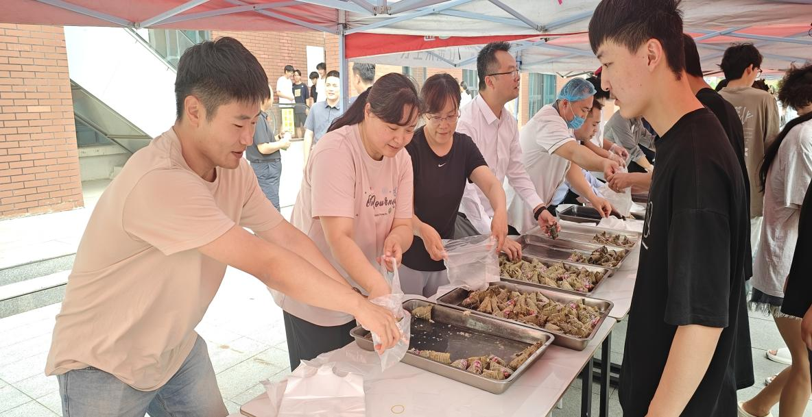随后,老师们将精心准备的粽子送到同学们手中。粽子飘香,情谊更浓,拿到粽子的同学们脸上洋溢着喜悦的笑容,纷纷向老师表达感谢。一位留校同学激动地说道:“虽然端午节不能回家与家人团聚,但在公司能收到老师们送来的粽子,感觉特别温暖,就像在家一样。”